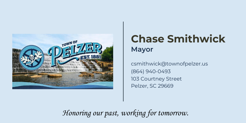 Through collaboration with Town Council, residents, and local businesses, Mayor Smithwick works to ensure that Pelzer remains a welcoming and thriving community while honoring the values and traditions that have shaped the town for generations.